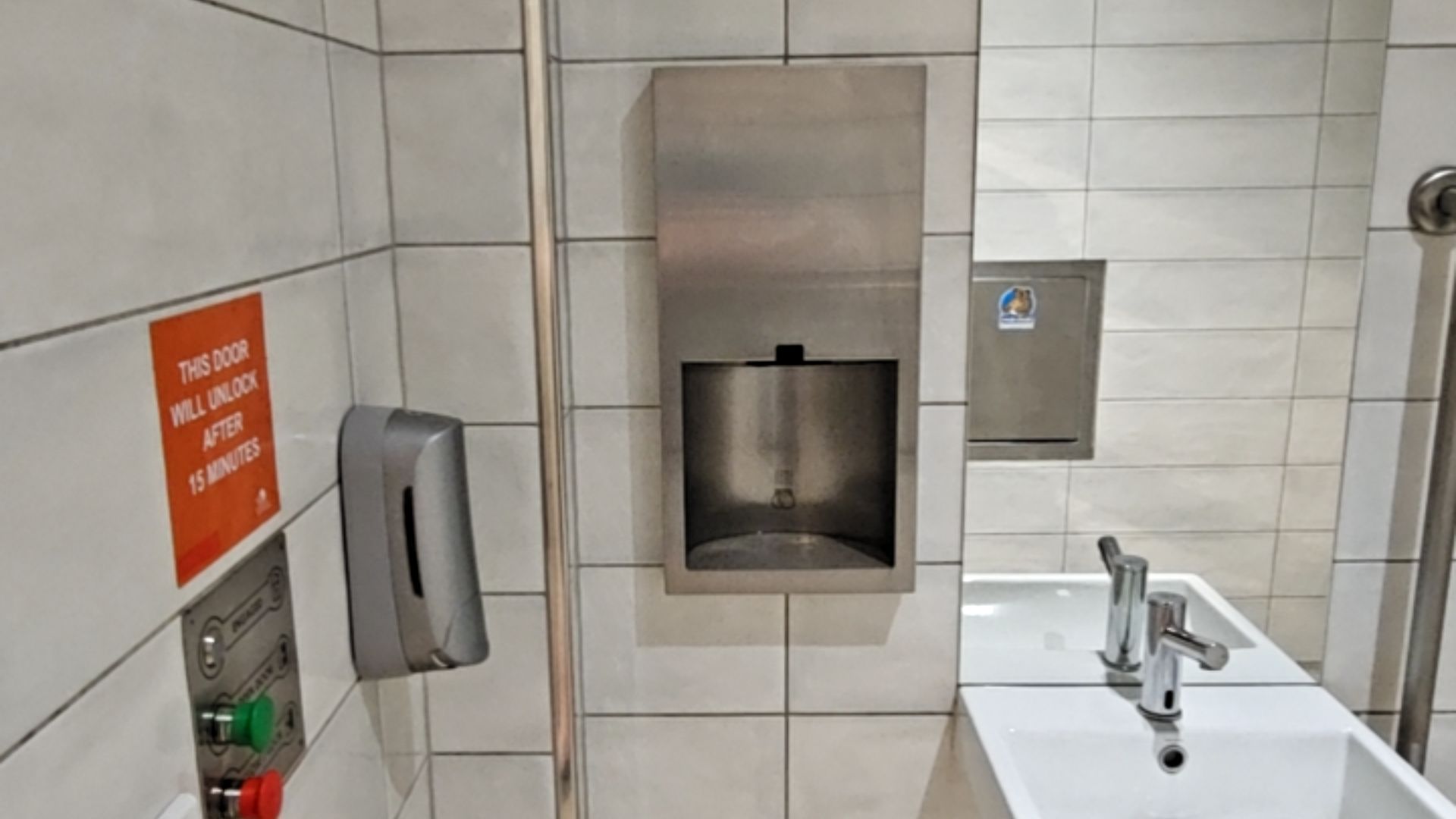 - Restroom doors can be opened, locked, and unlocked with one hand, and staff can unlock them in an emergency.