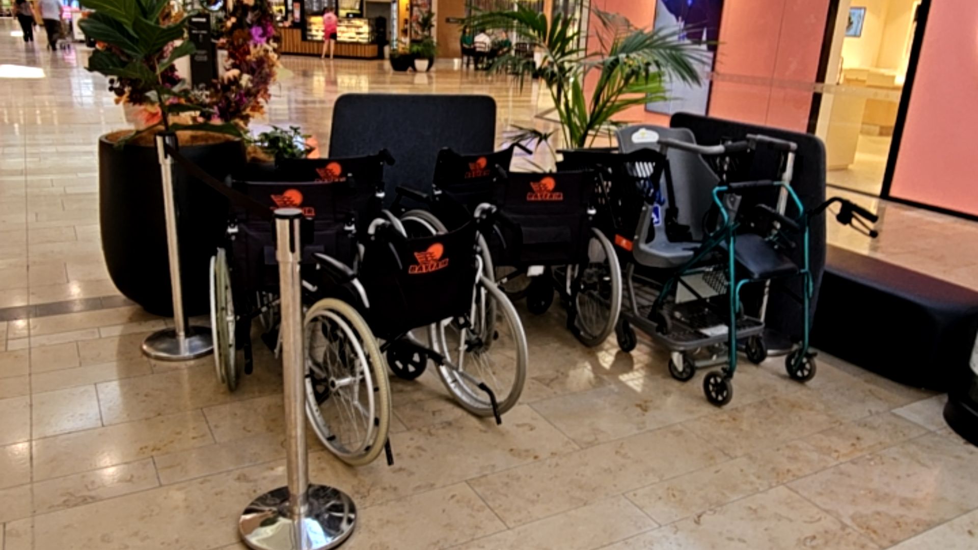 - Wheelchairs, mobility scooters, and walkers are available for loan, alongside power chair and mobility scooter charging centres.