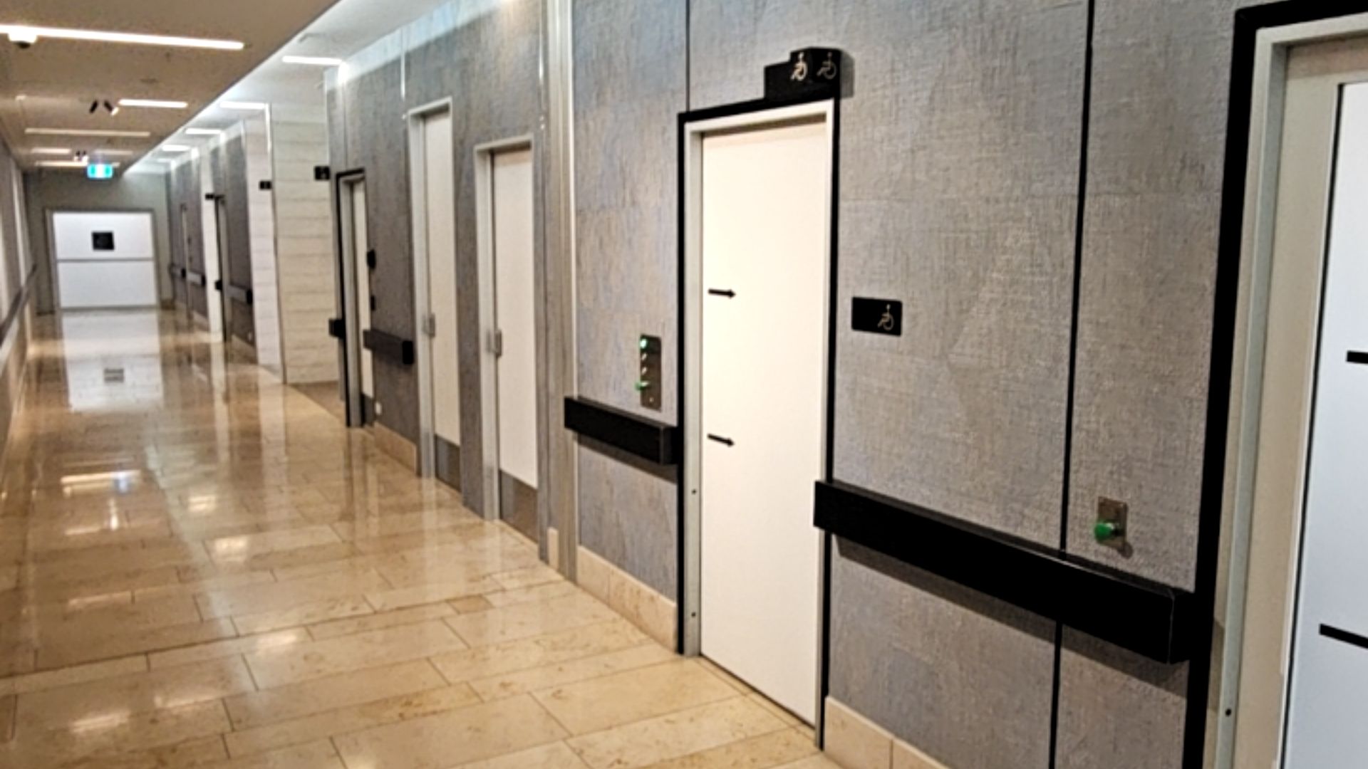 - The restroom interiors are spacious, exceeding the 2 metre x 1.6 metre minimum for manual wheelchairs or powerchairs.
