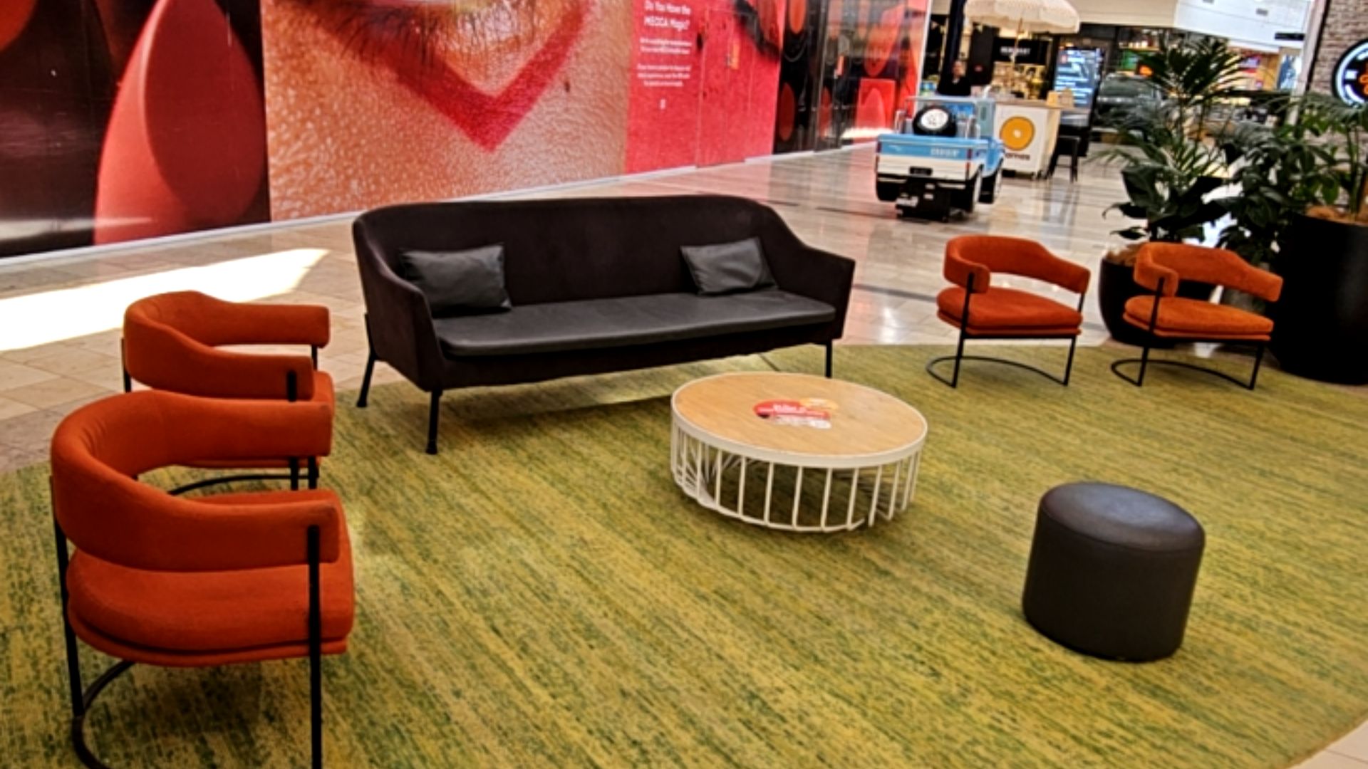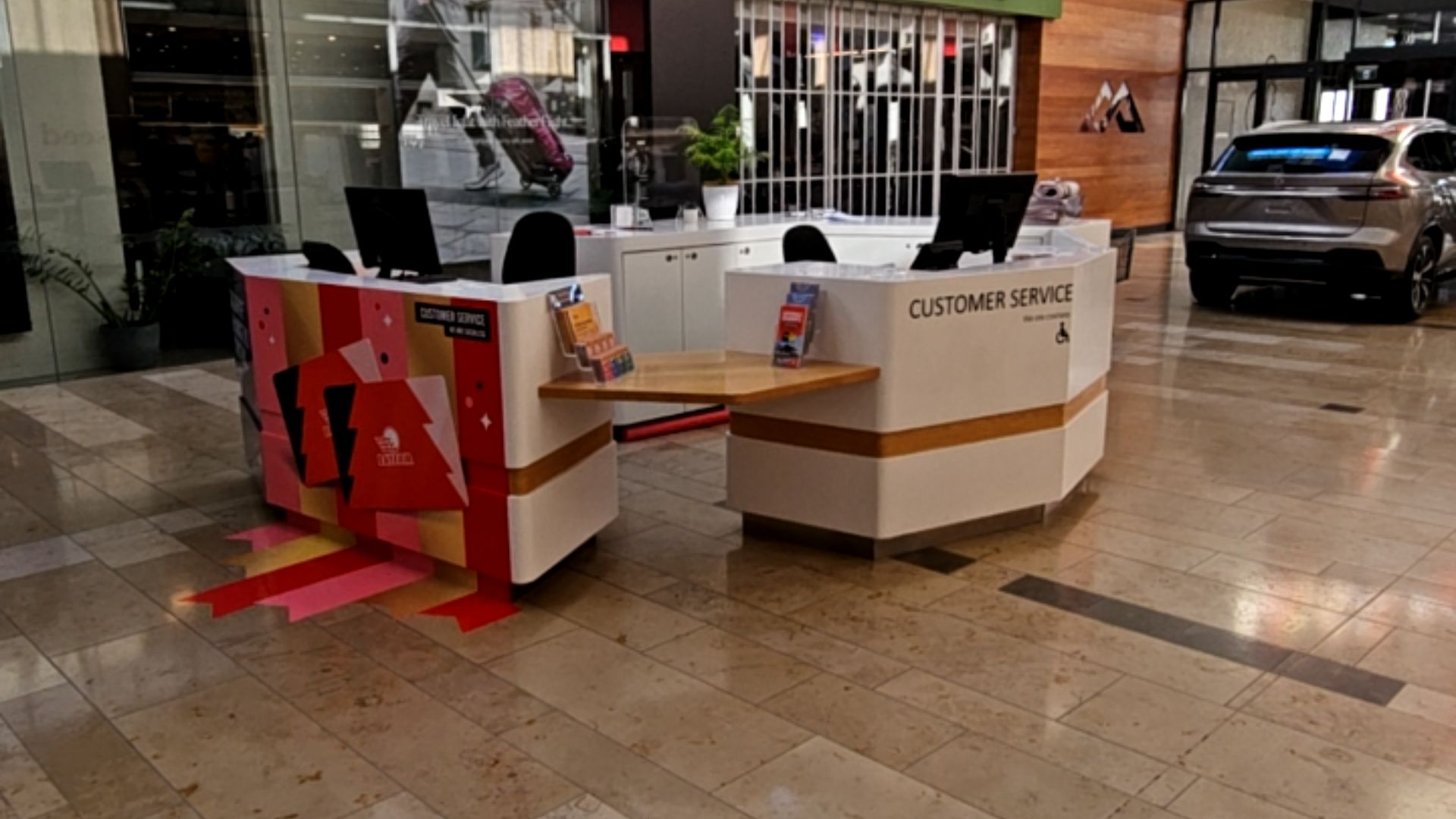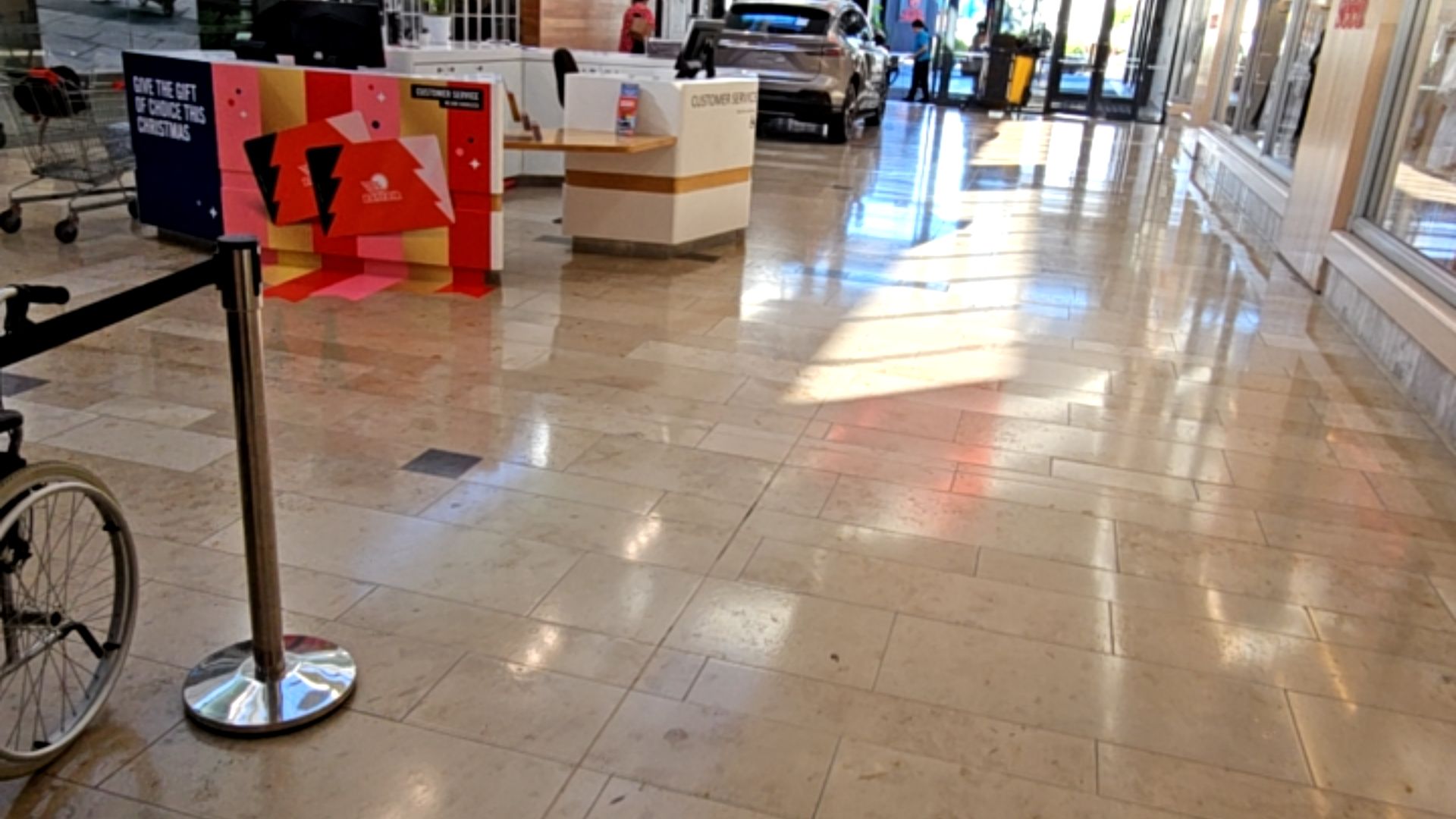 - Car displays and individual store stalls throughout the mall may pose a barrier to blind visitors.