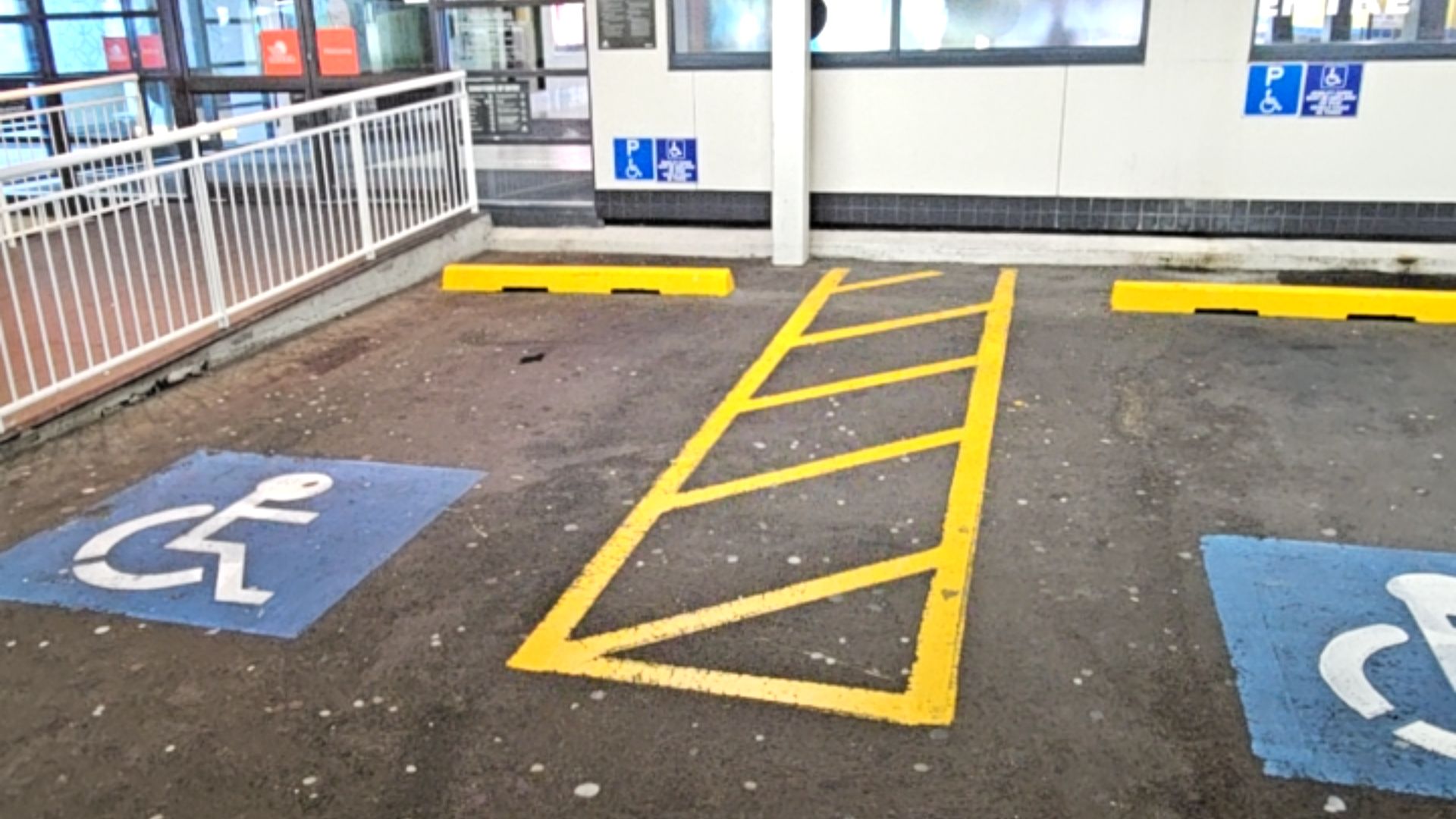 - Accessible parking spaces provide sufficient room for transfers and offer level entry.